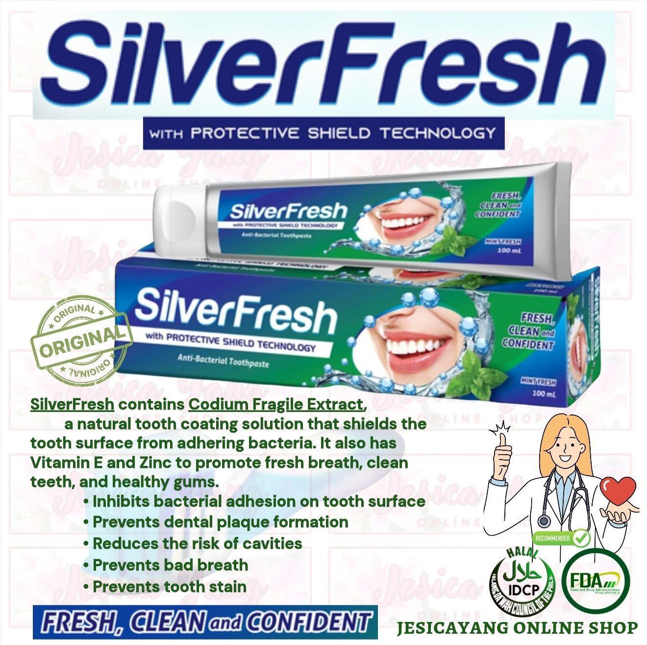 Introducing Silver Fresh, powered by Japanese technology and enriched with Codium Fragile Extract—a powerful ingredient that kills 99.9% of bacteria while keeping your breath fresh, clean, and moisturized all day and night!